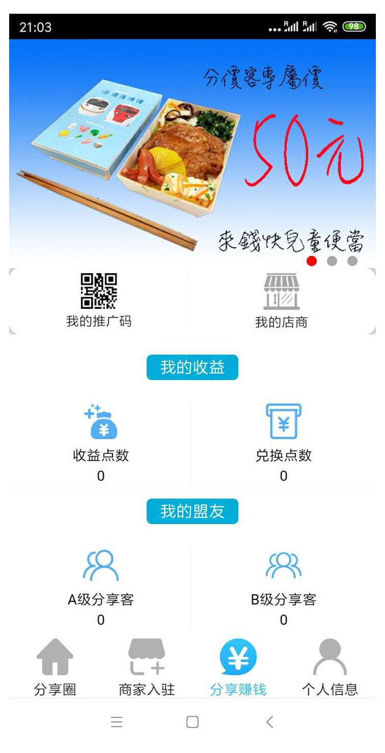 - 分享客:購買點數達到設置的標準,升級成可以分享的會員,能打開分享二維碼和發展商家。